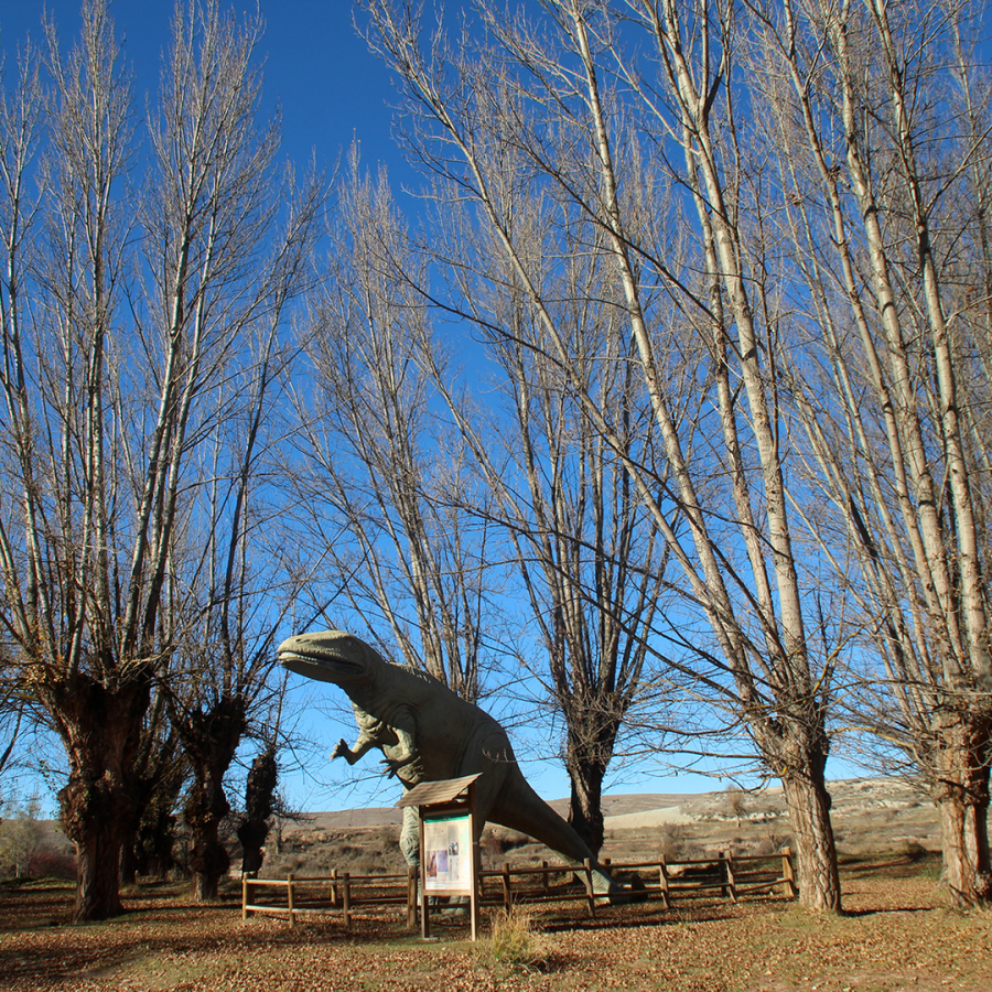 reproducción del Megalosaurio y desde este punto seguir por los caminos situados junto al río hasta el parque de los Dinosaurios y el Puente Medieval.